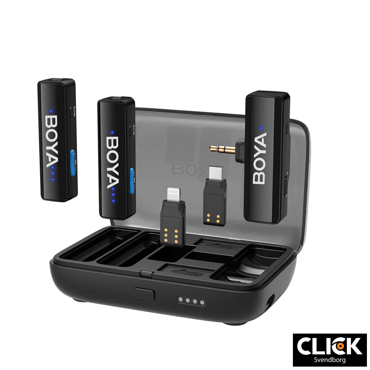 Dette gør mikrofonen kompatibel med kameraer, smartphones, tablets og computere, hvilket giver dig frihed til at skifte mellem enheder uden at skulle investere i flere mikrofoner. Adapterne udskiftes nemt og hurtigt via et smart kliksystem, hvilket gør BOYALINK V2.0 ideel til on-the-go optagelser, livestreaming, interviews og content creation.