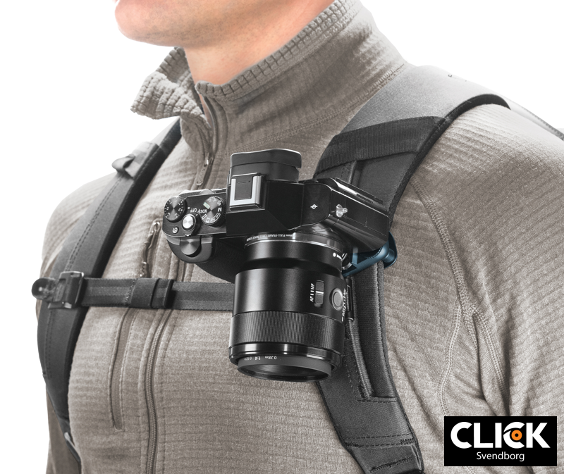 • Kompatibilitet: Clipsen kan monteres på remme og bælter op til 7,6 cm brede og 1,5 cm tykke. Systemet kan udvides med Peak Design-adapterplader til objektiver, GoPro-kameraer eller kikkerter.