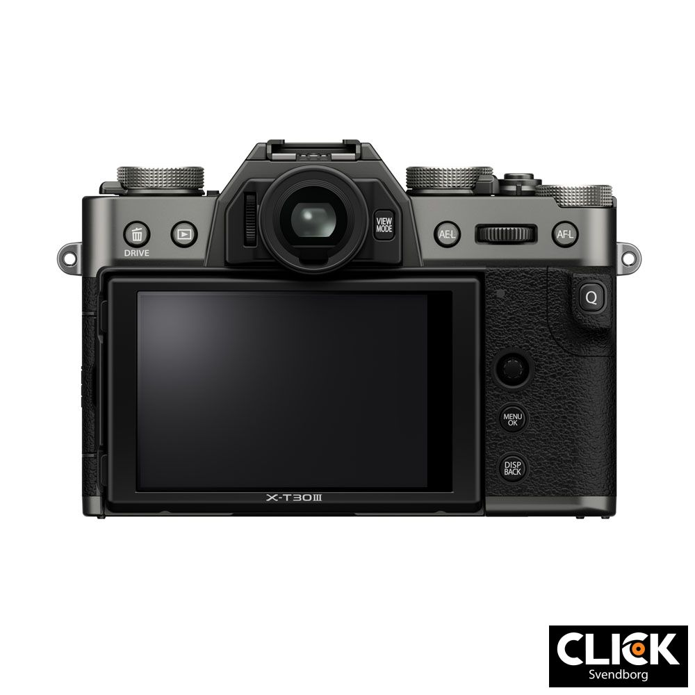 Med klassiske betjeningshjul og moderne funktioner som touchskærm og automatisk motivgenkendelse, er X-T30 III nem at bruge for alle. Den vippbare 3” LCD-skærm med 1,62 millioner pixels og den elektroniske søger med 2,36 millioner pixels sikrer præcis billedkomposition.