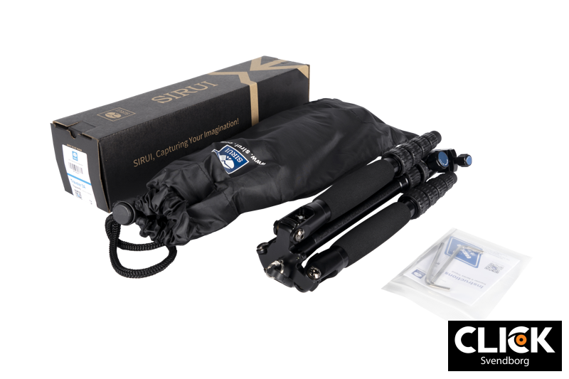 En praktisk, medfølgende bæretaske og grebsvenlige, isolerede indpakninger på 2 ben til brug i koldt vejr er standard med Sirui-stativer.