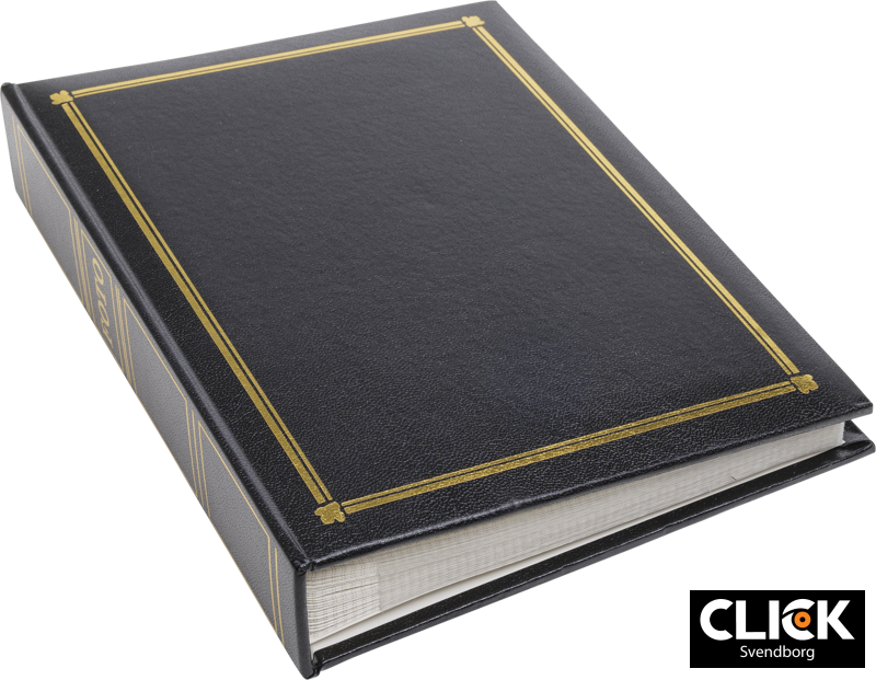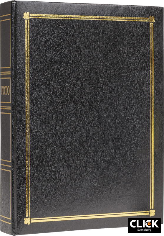 Omslaget er fremstillet i en læderlignende tekstur, der føles blødt og behageligt i hænderne. De guldfarvede kanter og hjørneaccenter fremhæver albummets klassiske udtryk, og ordet “FOTO” i guldtryk på ryggen gør det let at finde frem på hylden. Den sorte farve giver et minimalistisk og professionelt look, der klæder alle typer billeder.