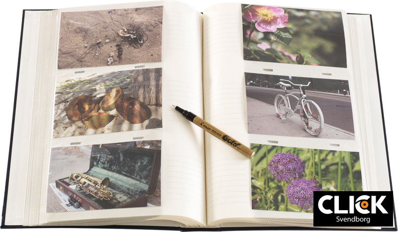 Ved siden af hvert billede er der plads til at skrive noter, datoer eller små historier, der sætter billederne i kontekst. Det gør albummet ideelt til at dokumentere familiehistorier, rejseoplevelser, bryllupper eller andre mindeværdige begivenheder.