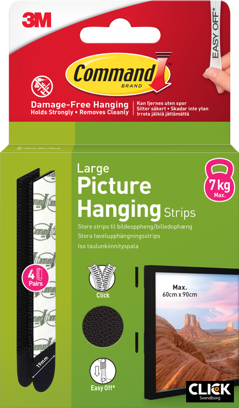 Som alle Command™ produkter sidder disse strips sikkert fast, men slipper igen uden at efterlade klæberester, mærker eller skader på overfladen. Det er perfekt til lejeboliger, kontorer, studier eller andre steder, hvor du vil bevare vægge og inventar intakte.