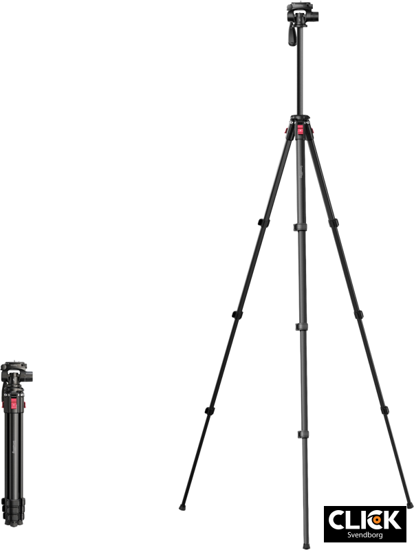 Med en justerbar midtersøjle kan stativet forlænges til en imponerende arbejdshøjde på 172 cm, hvilket giver dig frihed til at optage fra forskellige vinkler – perfekt til interviews, produktvideoer eller kreative kompositioner. Når optagelserne er færdige, foldes stativet sammen til en kompakt størrelse på 54 cm, og med en vægt på kun 1155 g er det nemt at tage med på farten.