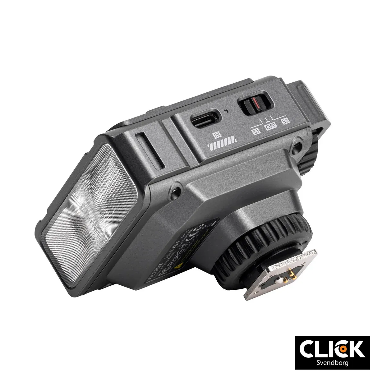 Designet er ikke kun funktionelt – det er også en visuel fornøjelse. Den grå Cyber Mech-stil skiller sig ud og tilføjer et futuristisk touch til dit kameraudstyr. Med en vægt på kun 144g er flashen både let og kompakt, hvilket gør den ideel til rejse- og gadefotografering.