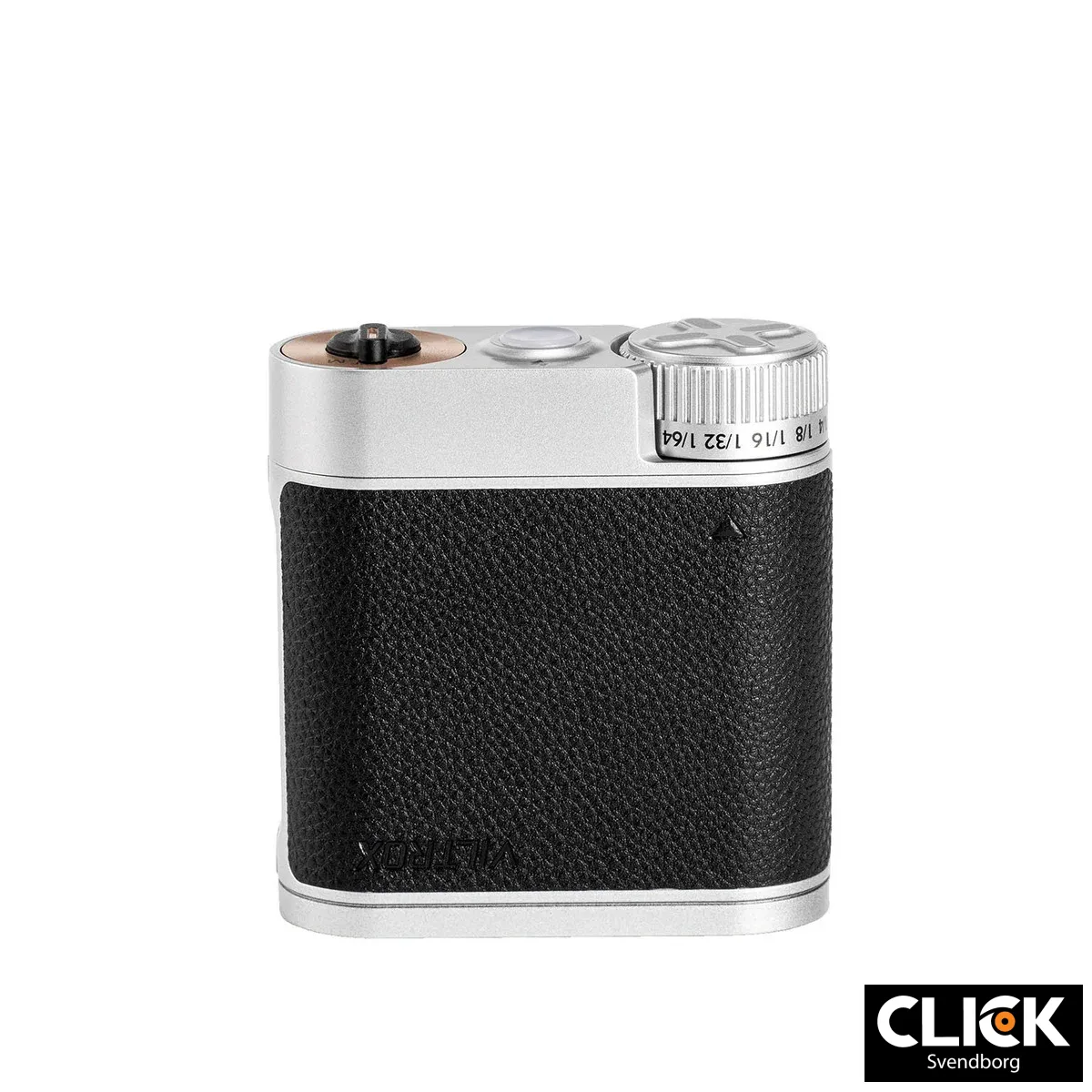 Flash Z1 har en mat sølvfarvet metalfinish kombineret med læderdetaljer og vintage-drejeknapper, der giver en tidløs og eksklusiv følelse. Den passer perfekt til kameraer med retrolook og til fotografer, der værdsætter æstetik.