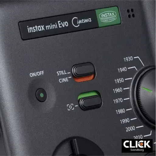 Denne kombination af æra og intensitet giver i alt 100 kreative udtryksmuligheder. Det gør instax mini Evo Cinema™ til et af de mest fleksible og kreative instantkameraer på markedet – og et ideelt værktøj for både begyndere og visuelle skabere, der ønsker fuld kontrol over deres stil.