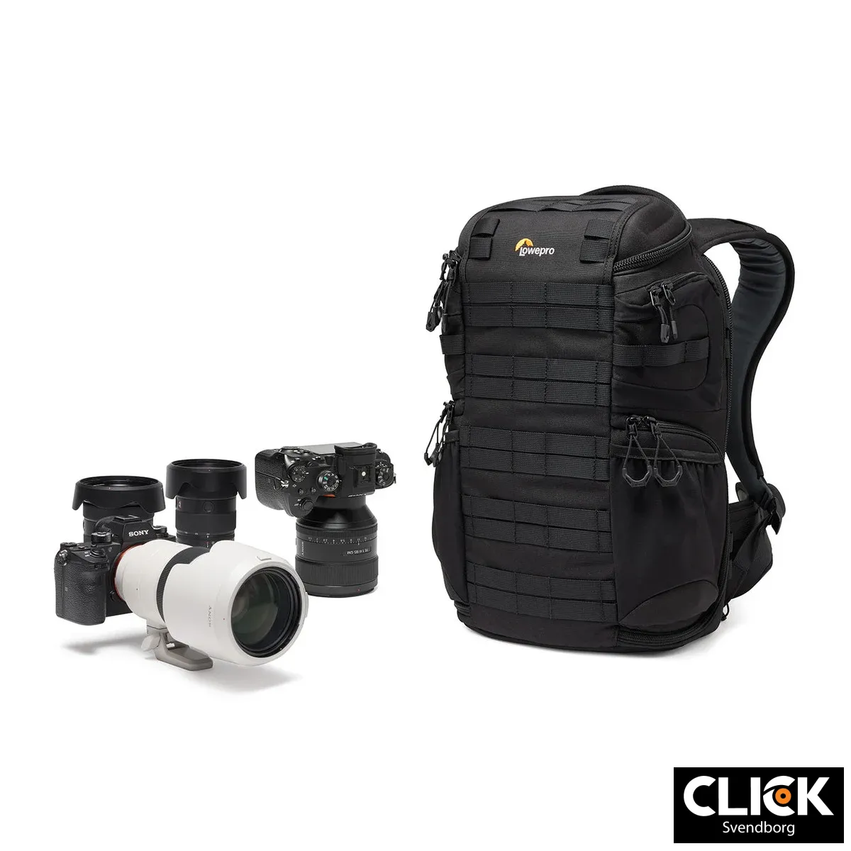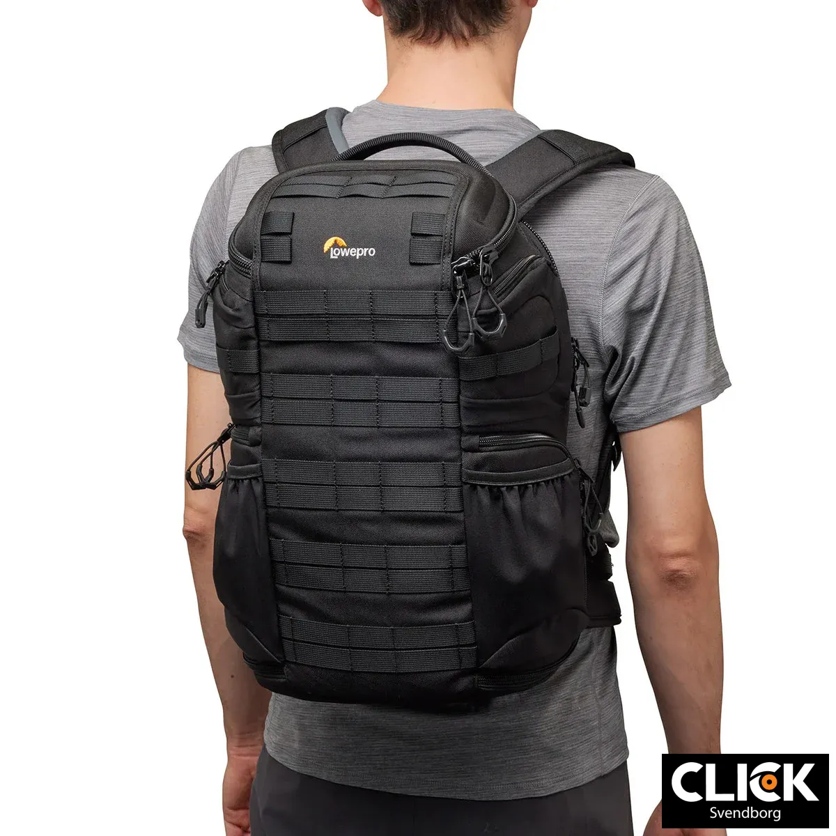 Rygsækken er udstyret med Lowepros SlipLock™-modulære fastgørelsessystem, som gør det muligt at tilføje ekstra tilbehør som snoretasker, lynlåspunge og Quick Straps. De udvendige strækbare lommer kan rumme en 1L vandflaske eller et kompakt stativ, hvilket gør rygsækken ideel til både urbane og outdoor-aktiviteter.