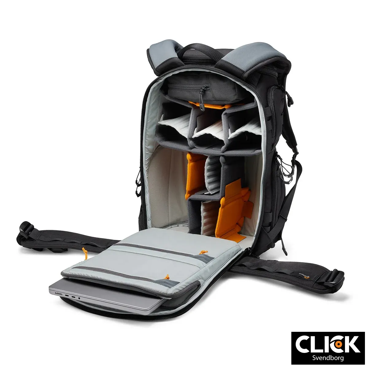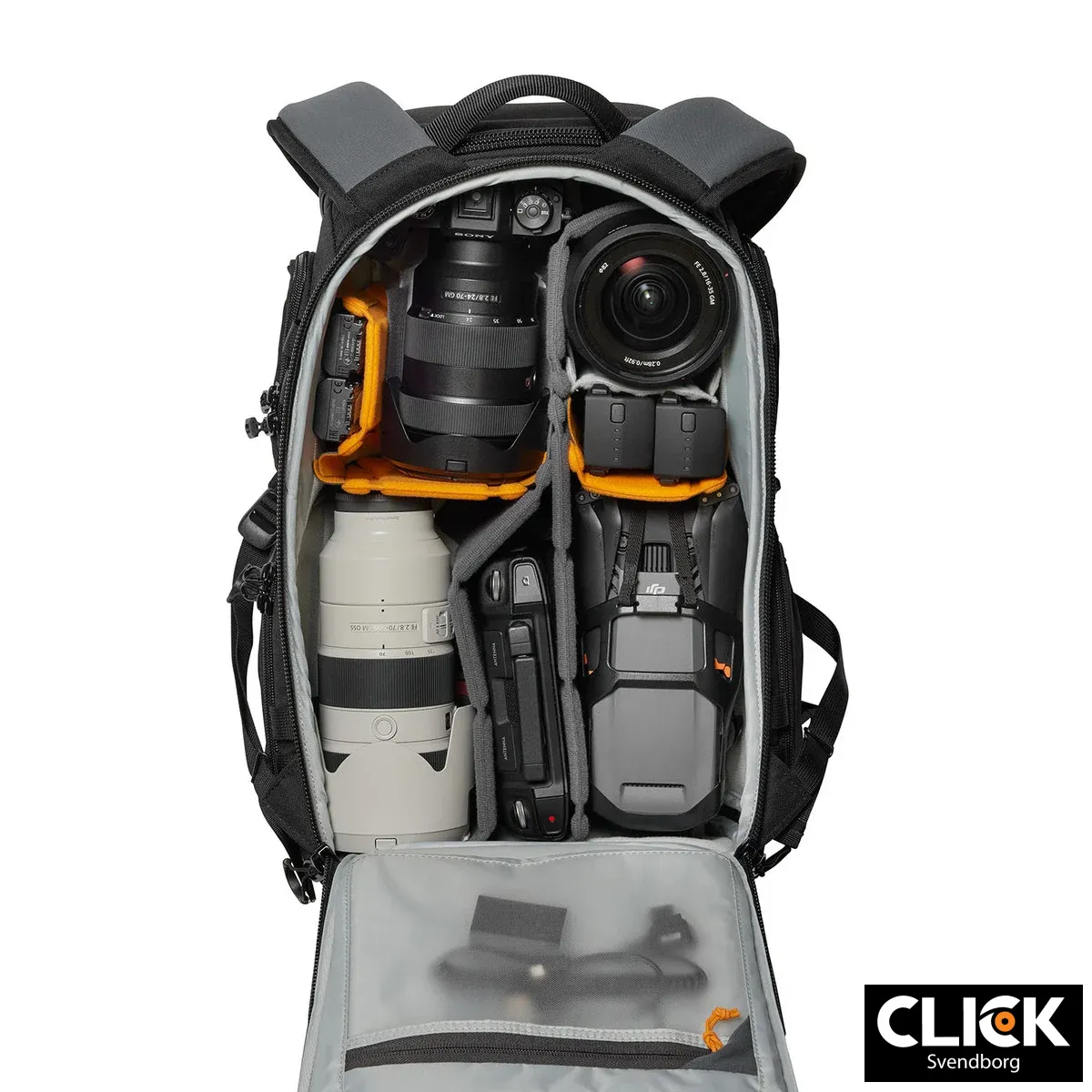 Indvendigt finder du Lowepros MaxFit™-inddelere, som er formstøbte og justerbare, så du kan tilpasse rummene præcist efter dit udstyr. Det sikrer både optimal beskyttelse og maksimal udnyttelse af pladsen. Uanset om du arbejder med DSLR, spejlløst systemkamera, droner eller en kombination, kan rygsækken tilpasses dine behov.